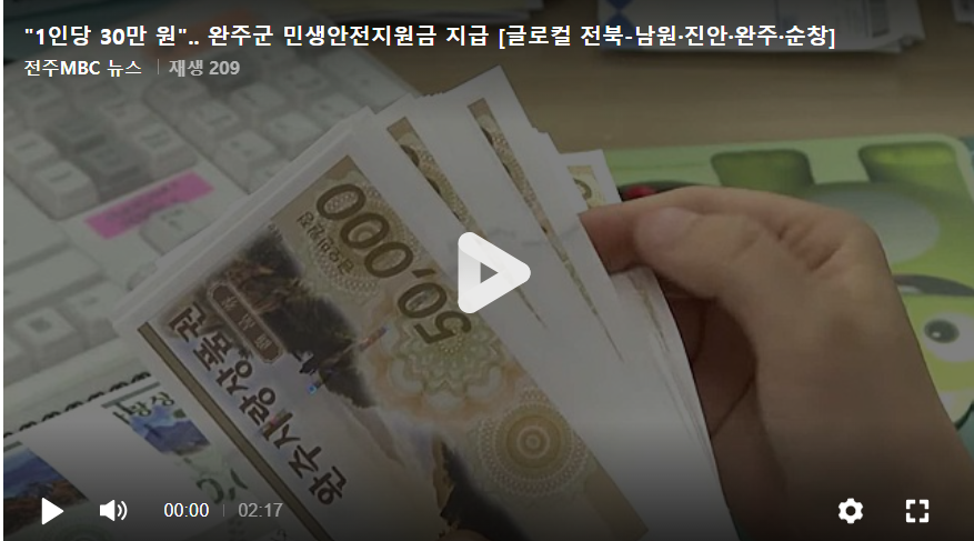 완주군이 설 명절 전에 전체 군민들에게 1인당 30만 원의 민생안정지원금을 지원할 예정입니다. 완주군은 경기침체로 주요 경제지표가 하락하고, 탄핵정국 등 정치적 불확실성이 경제 전반에 파장을 미치고 있어 군민의 생활안정과 지역의 내수활성화를 위해 300여억 원을 투입한다고 합니다.